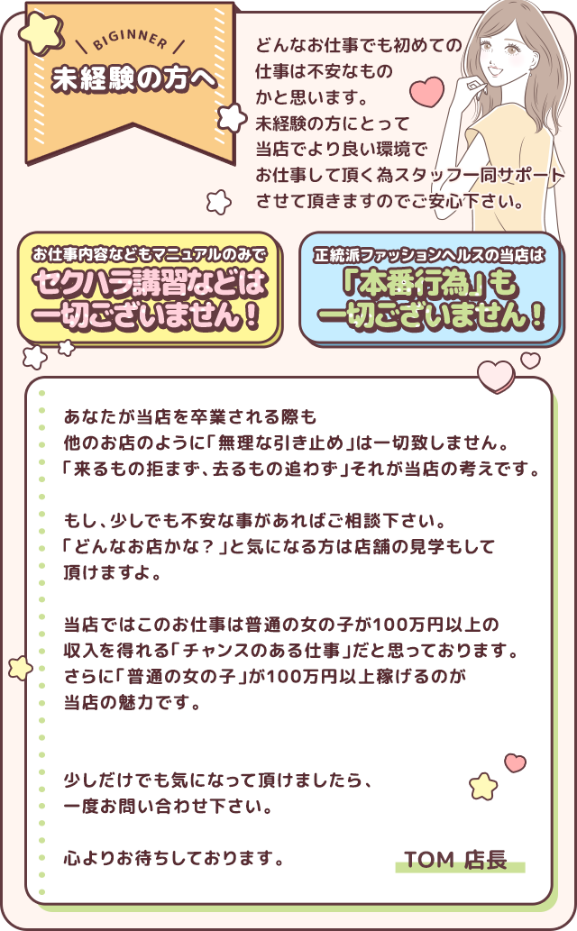 ご質問・面接申込・体験入店申込など